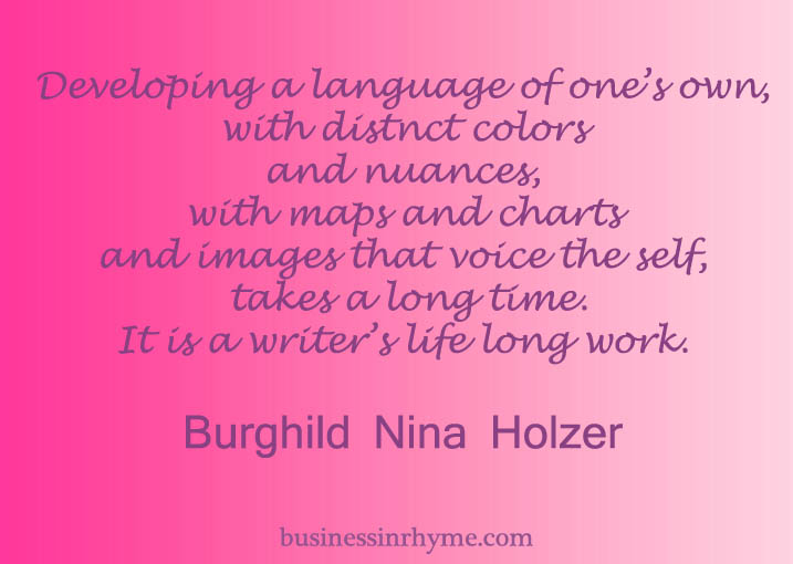 Daily verse with purpose: Burghild Nina Holzer May 26, 2016May 24, 2016 by Maja Todorovic, posted in Daily verse with purpose Need some more poetic inspiration? Sign up for a free bimonthly newsletter. Share this:Tweet Click to email a link to a friend (Opens in new window) Email Click to print (Opens in new window) Print Click to share on Stumbleupon (Opens in new window) Stumbleupon More Click to share on WhatsApp (Opens in new window) WhatsApp Pocket Click to share on Reddit (Opens in new window) Reddit Like Loading... Related