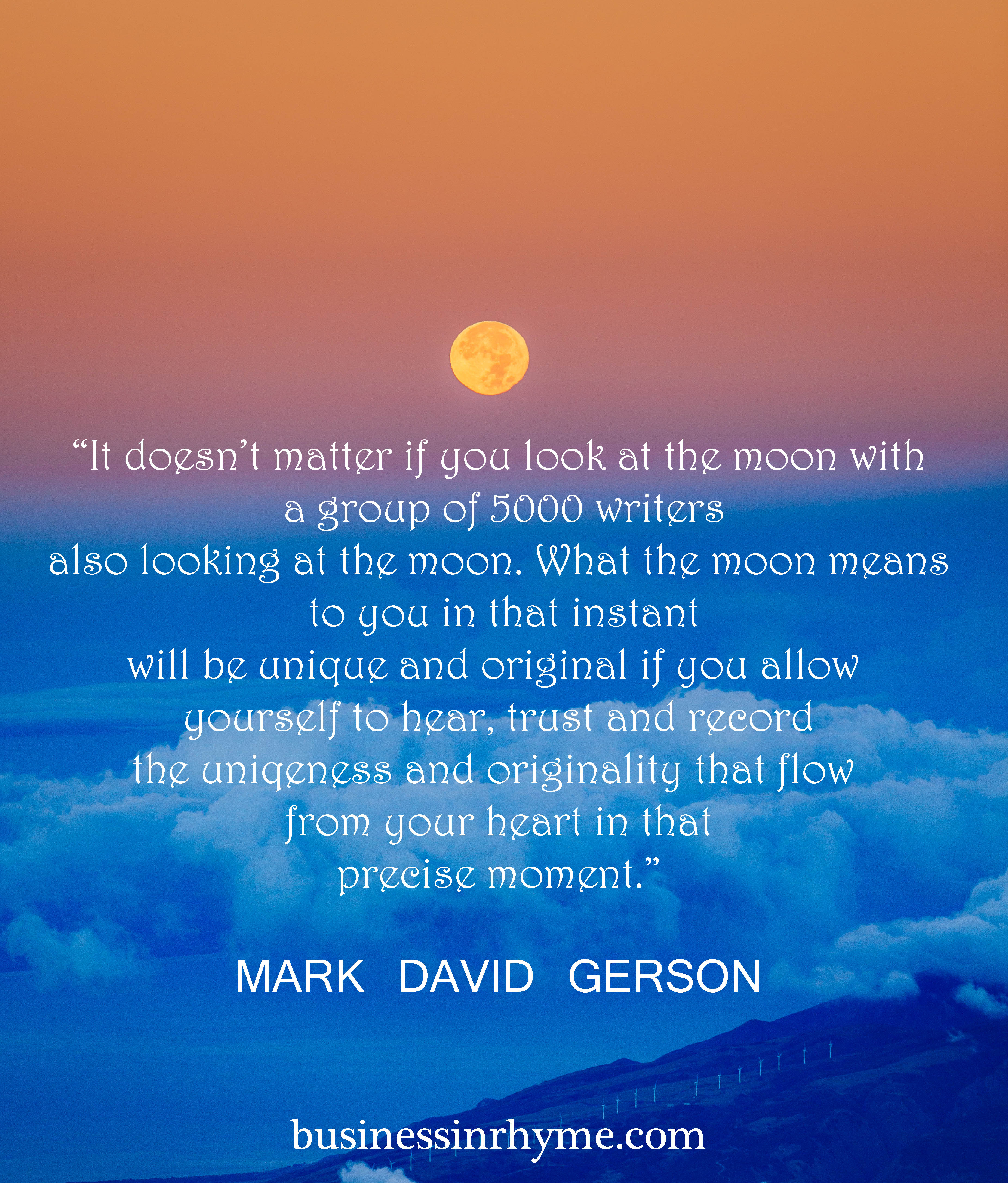 As long as you trust your authenticity your writing is original. The way you select and arrange words – especially in poetic writing which is so sophisticated, each time you write poem you are discovering your specific writing expression. It’s unique just as your finger print – you learn to use the words to best express your nature, personality, opinions, belief system and anything you stand for.