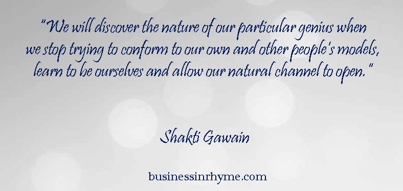 We will discover the nature of our particular genius when we stop trying to conform to our own and other people’s models, learn to be ourselves and allow our natural channel to open.